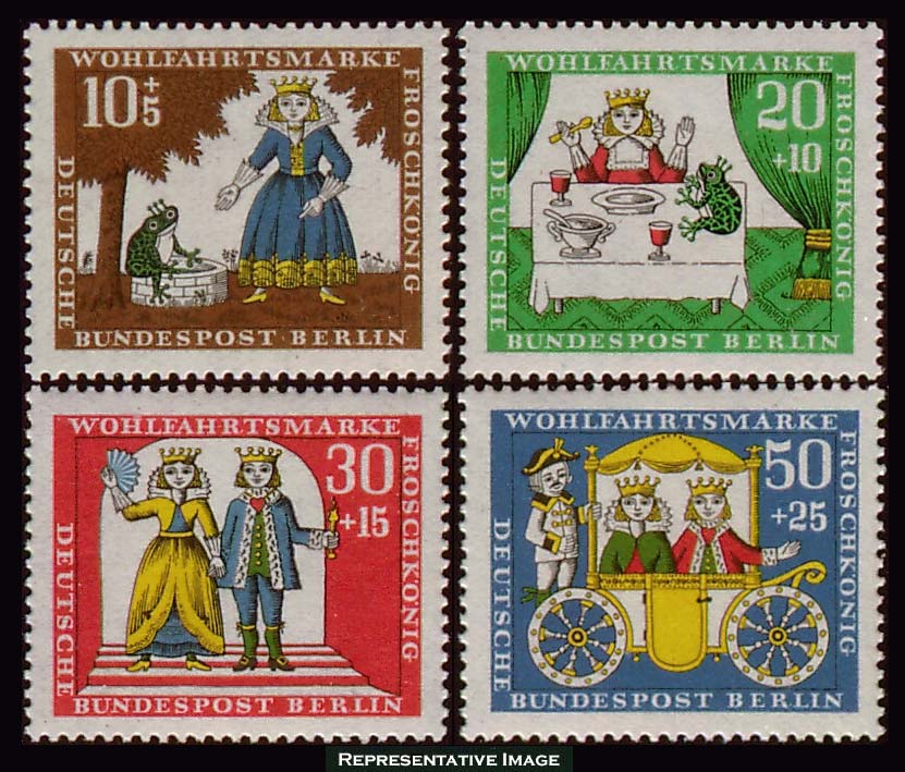Berlin 10pf+5pf, 20pf+10pf, 30pf+15pf and 50pf+25pf Scenes from The Princess and the Frog Semi-Postal for Independent Welfare Organizations. Mint never hinged.Seller Information