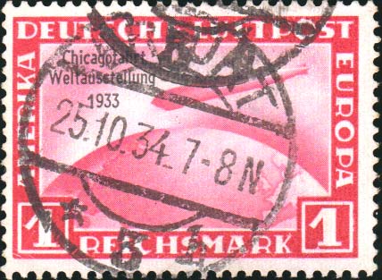 1M Graf Zeppelin Crossing Ocean Overprinted Chicagofahrt Weltausetellung 1933. Used.Seller Information