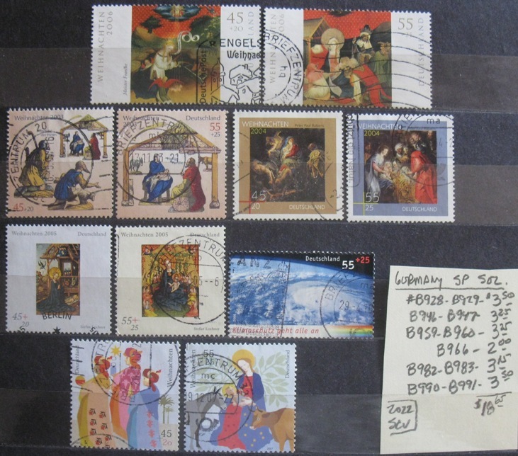 Germany used semi-postal selection #'s B928//B991. Total 2022 SCV=$18.65