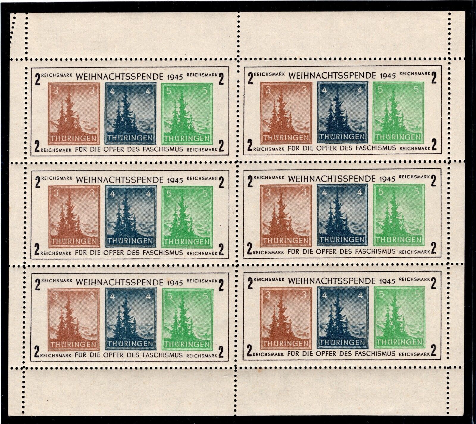 GERMANY SOVIET ZONE THURINGIA CHRISTMAS SHEET 16N3a IN BLOCK OF 6 VERY FINE MNH