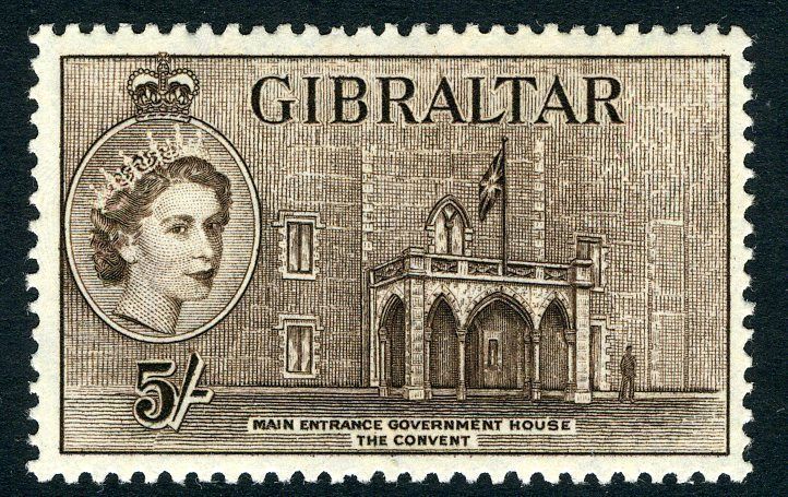 GIBRALTAR-1953-59 5/- Deep Brown Sg 156 UNMOUNTED MINT V12234