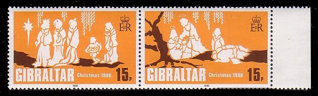 Gibraltar, Scott #399a (398-399 Pair), 1980 Christmas issues in Mint Never Hinged condition.Scott 2026 Catalogue Value $0.60
