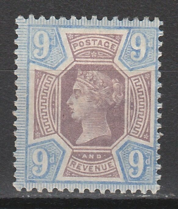 1887 -92 qv jubilee 9d mint hinged sg cat 75 pounds
