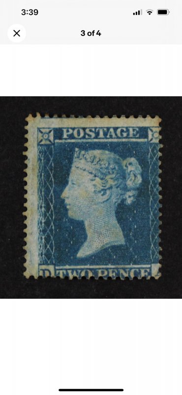 Great Britain 19 U F-VF a two penny blue of Queen Victoria with a SCV $ 375.00Seller Information