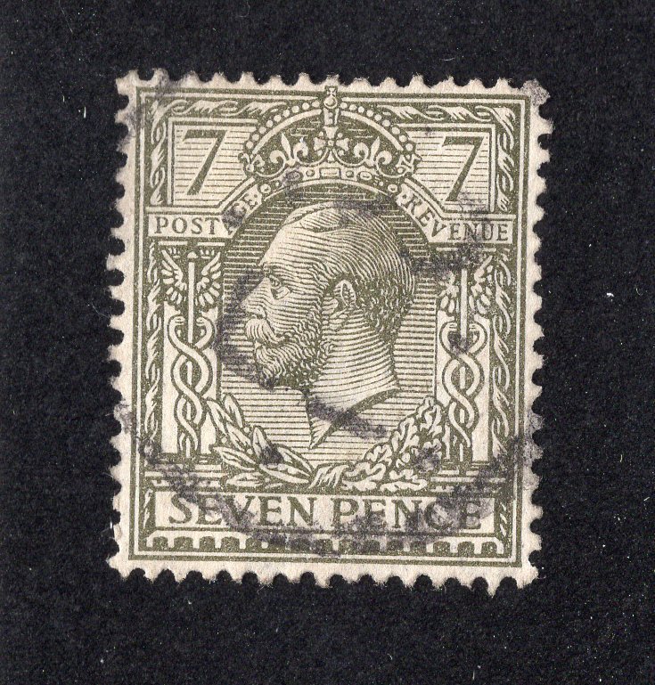 Great Britain 1915 7p bronze green George V, Scott 168a used, value = $29.00