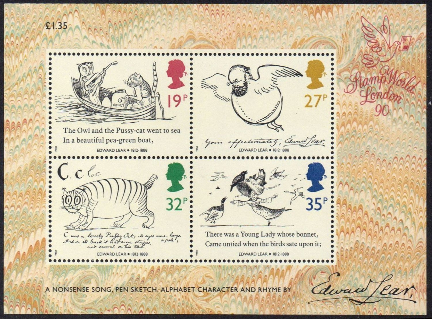 Great Britain 1988, Death Centenary of Edward Lear MNH sheet # 1229a