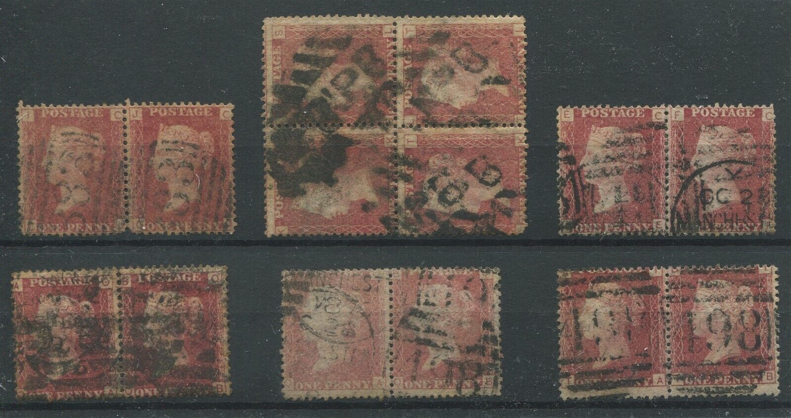 Grade: F (Fine) GREAT BRITAIN #33 1p rose red 5 PAIRS, 1 BLOCK OF 4 USED GENERALLY F Powered by SixBit's eCommerce Solution