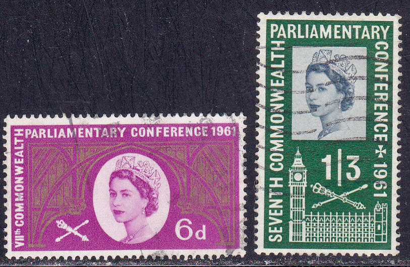 Great Britain, Scott catalogue # 385-386, a complete set, used. Scott catalogue value (2012 catalogue) is $ 3.45. Selling at 1/2 of catalogue value!