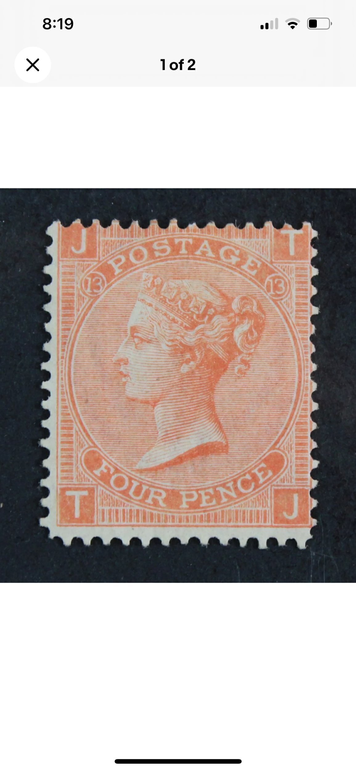 Great Britain 43 H F-VF a four penny vermillion of Queen Victoria with a SCV $ 600.00Seller Information