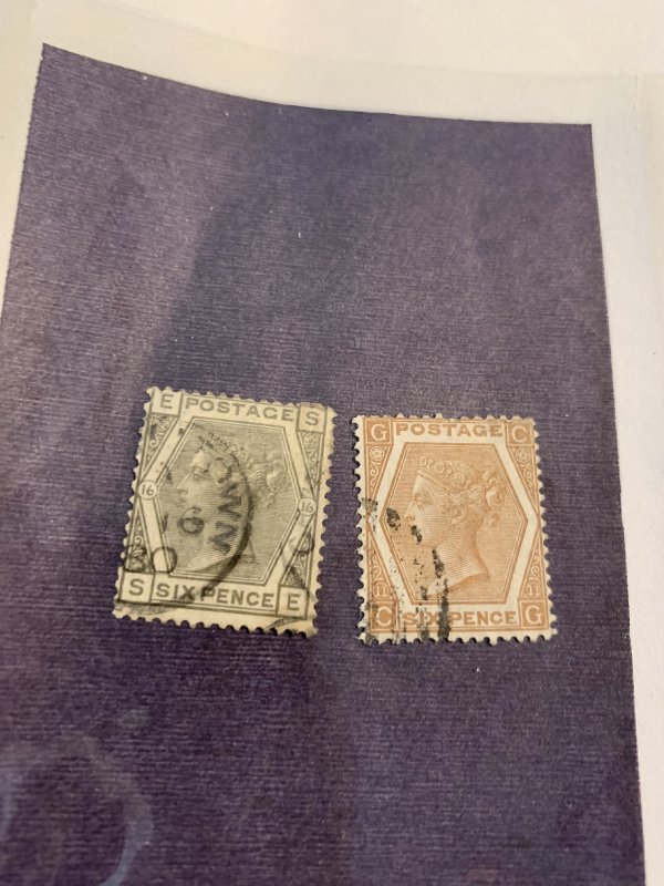Great Britain 59-60 U F-VF two six pence from 1872-3 of Queen Victoria with a SCV $ 305.00