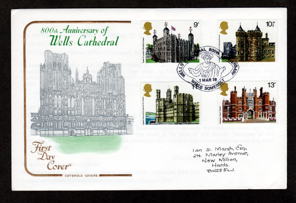 Great Britain # 831-834 FDC Wells Cathedral!