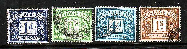 Great Britain-Sc#J35-8- id7-four used postage dues-1951-2- Canadian buyers will be charged applicable GST/HST- I am a member of the Canadian Stamp Dealers Association and have been serving the collector since 19 ... Read More