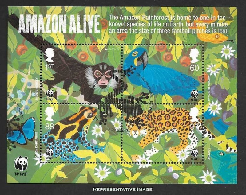 1S Spider Monkey 60p Hyacinth Macaw 88p Poison Dart Frog and 97p Jaguar Worldwide Fund For Nature Se-tenant Souvenir Sheet. Mint never hinged.