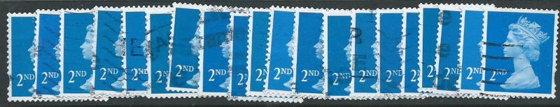 Please see scan. This is selection of 20 2nd class definitives for study . All obvious centre band phosphor in clean condition.Am honestly not sure if only SG 1670 as difficult to identify printers (eg SG 1664)