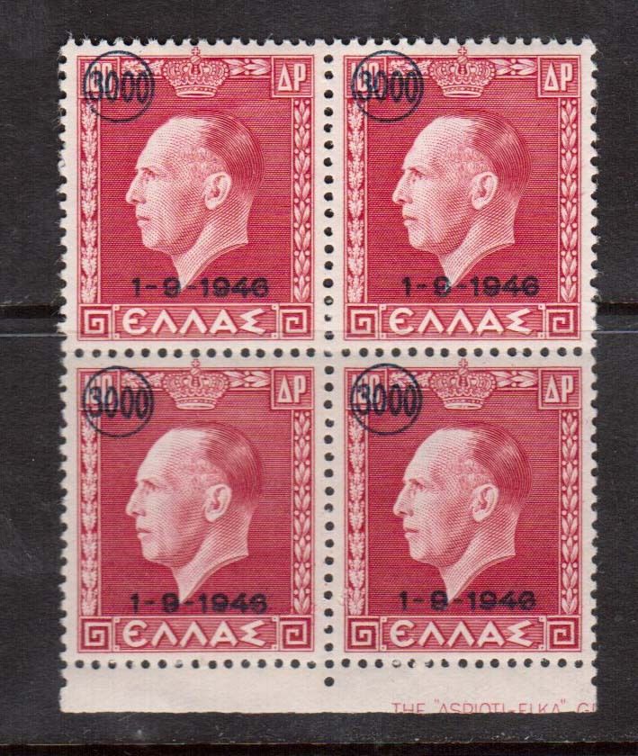 Grade: Ungraded Greece #487 Very Fine, Never Hinged Block. CANADIAN RESIDENTS WILL BE CHARGED APPROPRIATE TAXES FOR THEIR PROVINCE. Shipping Information: Please Add U.S.$2.50 for shipping and handling to USA & Cana ... Read More