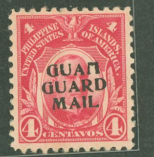 1930 4c Guam Guard mail, carmine (Phil. 291 McKinley w OP, small font) Very nice margins (VF+); rich color, bold OP; full OG tropical (Interleaving); sound & beautiful; SCV:225.00; missing fm most collections!APS Stamp Id: 502016525
