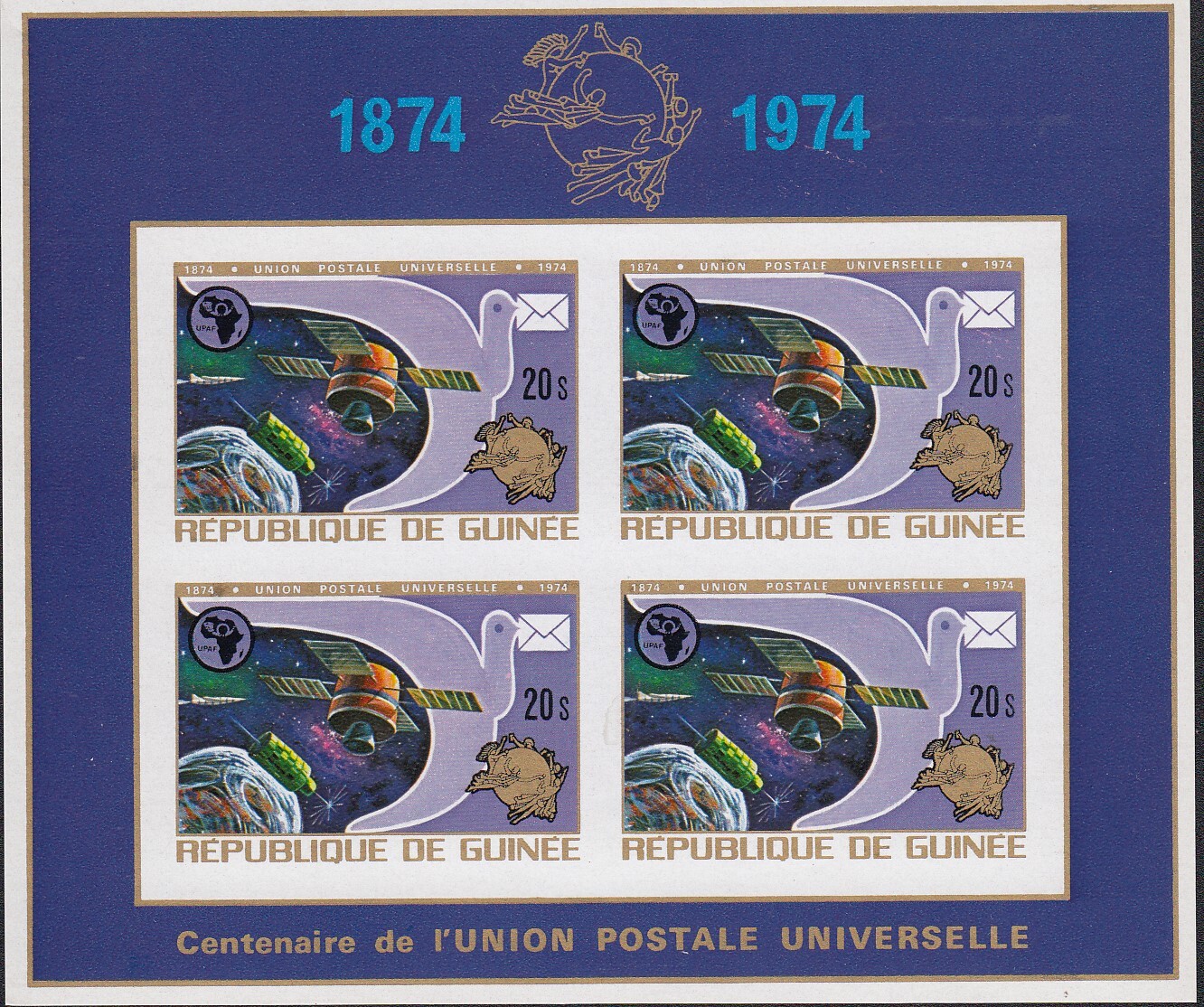 Guinea, Scott #677, 1974 UPU Centenary Souvenir Sheet issue in Mint Never Hinged condition.Scott 2023 Catalogue Value $12.00