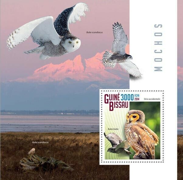 Grade: SuperbGUINEA-BISSAU 2014 MNH. OWLS | Yvert&Tellier Code: 1026 | Michel Code: 7546 / Bl.1313
