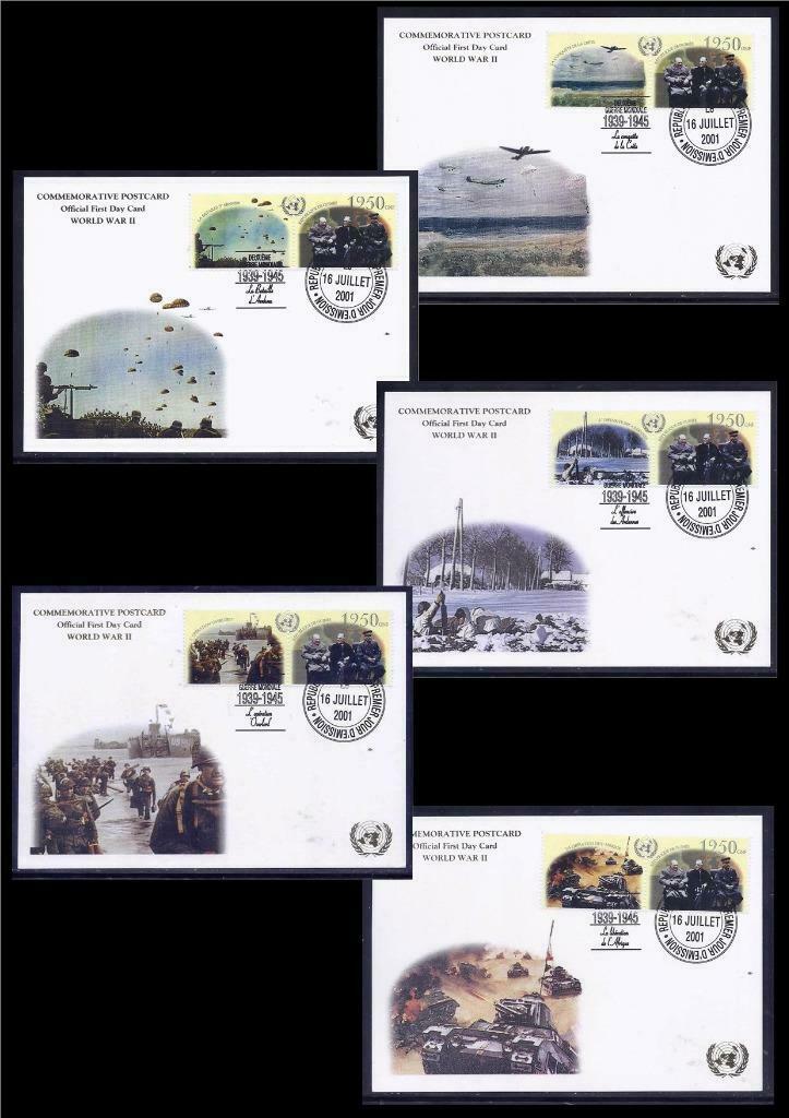 GUINEA STAMPS 2001 UN WWII WW2 WAR SET OF 5 MAXIMUM CARD GOLD PRINTING VF