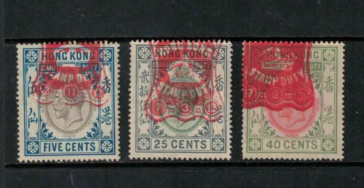 Hong Kong Barefoot 130, 134 & 136, Revenues, Used, KGV, 1921