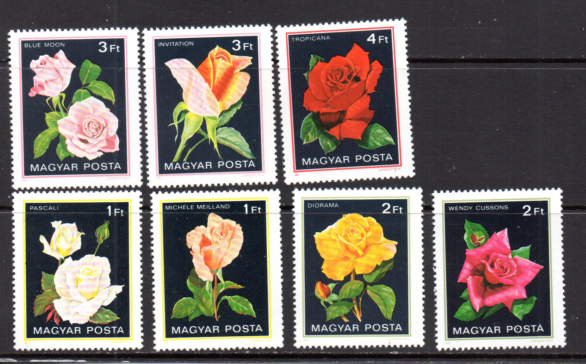Roses, set of 7, mint, never hinged, lowest value has stuck spot on gum, 2017 catalog 2.50Seller Information