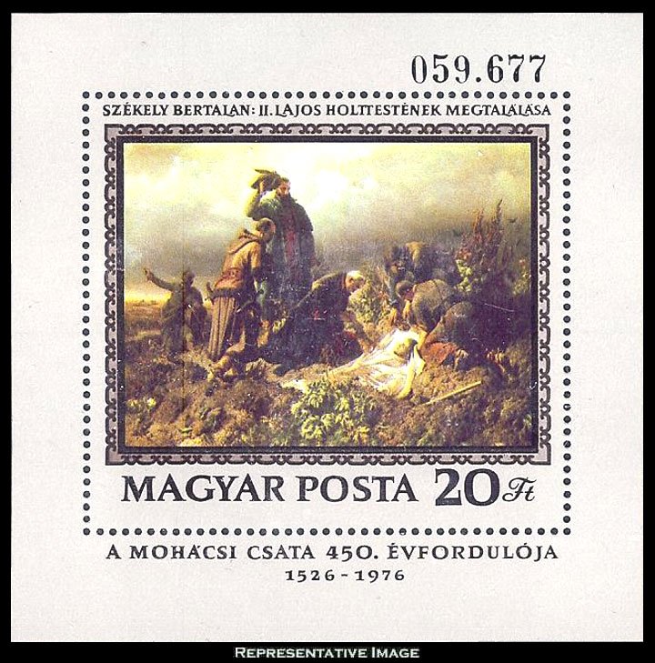 20F Discovery of Body of Lajos II by Szekely Battle of Mohacs Against the Turks Souvenir Sheet. Mint never hinged.Seller Information