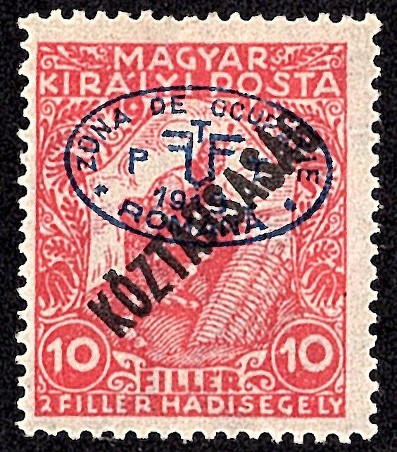 Hungary 10f+2f Soldiers Fighting Overprinted Koztarsasag and Zona de Occupatie Romana First Debrecen Issue. Used.Seller Information