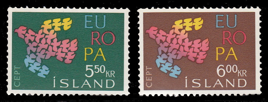 Iceland, Scott #340-341, 1961 EUROPA issues in Mint Never Hinged condition.Scott 2023 Catalogue Value $1.10