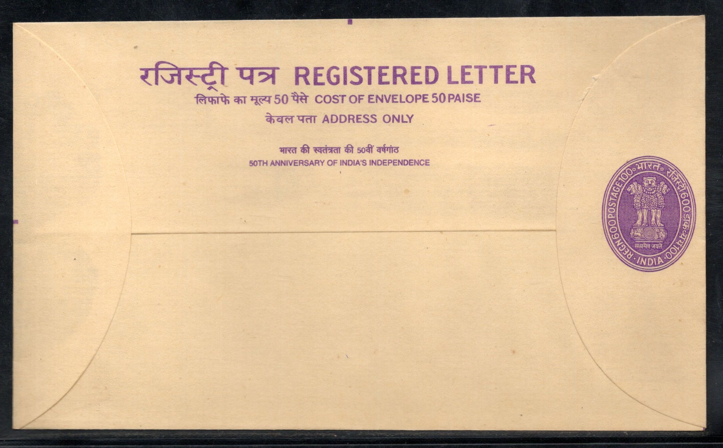 India 1997 600+100p Ashokan 50th Anni. of Independence Postal Stationery Registered Envelope FD Cancelled # 7326