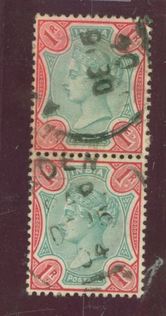 Aden cxl DD "DE 15 04" on pair of 1R; late usage of QV stamp APS Stamp Id: 501805443 APS Seller Id: 512077 Hinge Type: NG Other Catalog Name: Gibbons