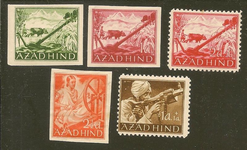 5 different issued by Germany during World War 2 in effort to induce India to change sides. Azad Hind means "Free India" All are hinged.