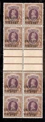 India Gwalior State 2 Rs KG VI SG 113 / Sc 113 Vert. Gutter BLK/4 Cat $500 MNH