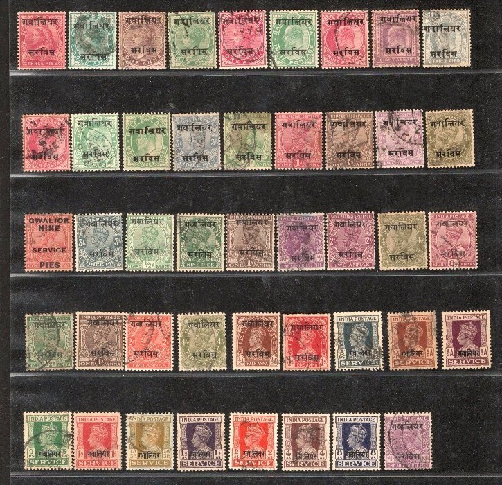 India Gwalior State 96 Diff. Postage & Service Used Stamps QV to KG VI # 1477...