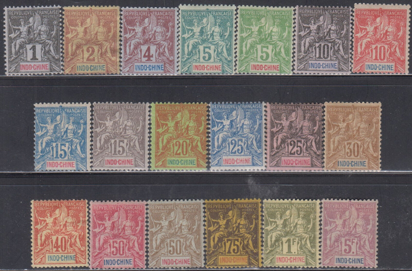 Grade: VF (Very Fine) Indo-China Hinged Scott 3-21 Buyer pays $ 1,50 Postage & Handling for N.America or $ 2,50 elsewhereMany more items in my Hip store