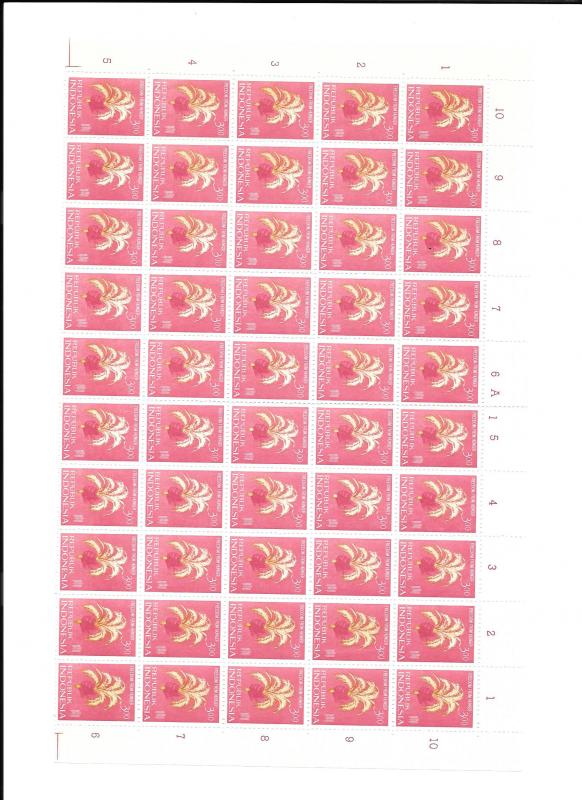 Indonesia Sheet #587 Year: 1963 Condition: MINT 50 stamps, all connected in the sheet as shown!