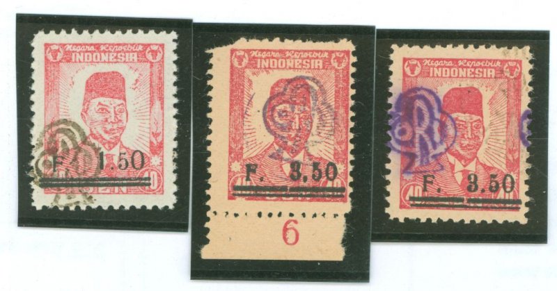 1947 Sumatra emergency issue - O145/71z, O147/71z, O147/71v, NGAI; O147/71z clipped corner UL (not counted)APS Stamp Id: 501813691