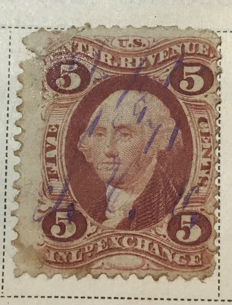 Inter revenue exchange five cent. Washington stamp.