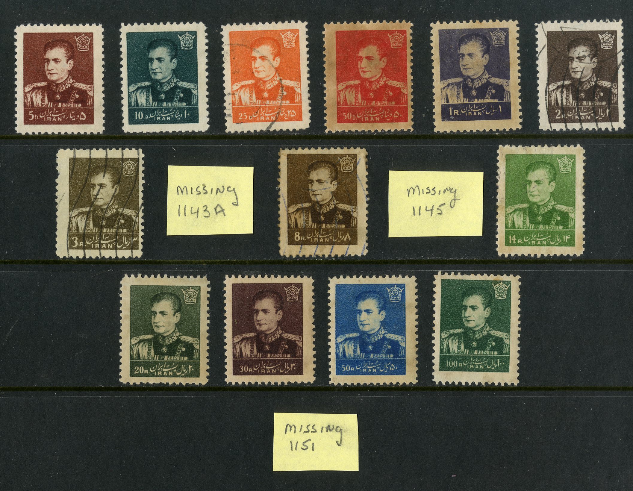 IRAN 1138-51 MH/USED SCV $232.25 BIN $100.00 (MISSING 1143a,1145,1151)