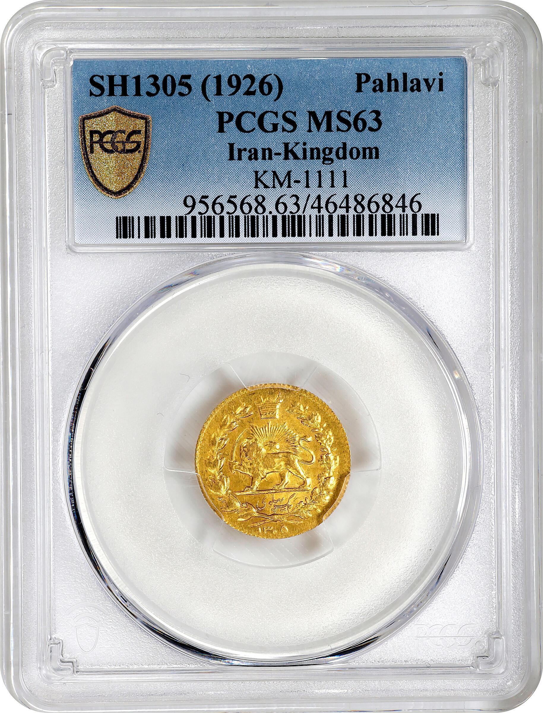 1926 (SH1305) Pahlavi gold coin in PCGS MS-63 condition. Item as pictured. Please look at photos to assess condition. Guaranteed genuine.