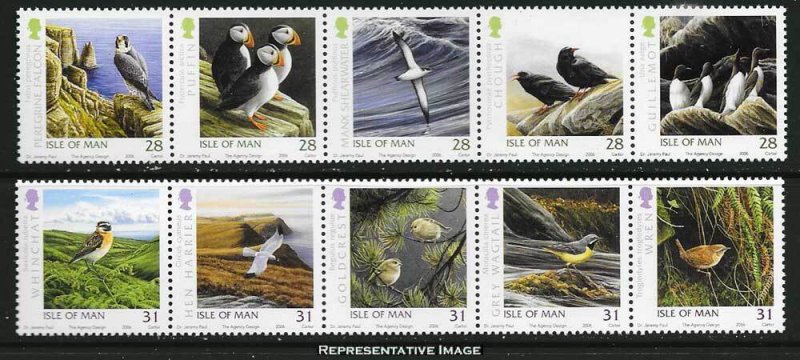28p, 28p, 28p, 28p and 28p and 31p, 31p, 31p, 31p and 31p Birds Se-tenant Strips of five. Mint never hinged.