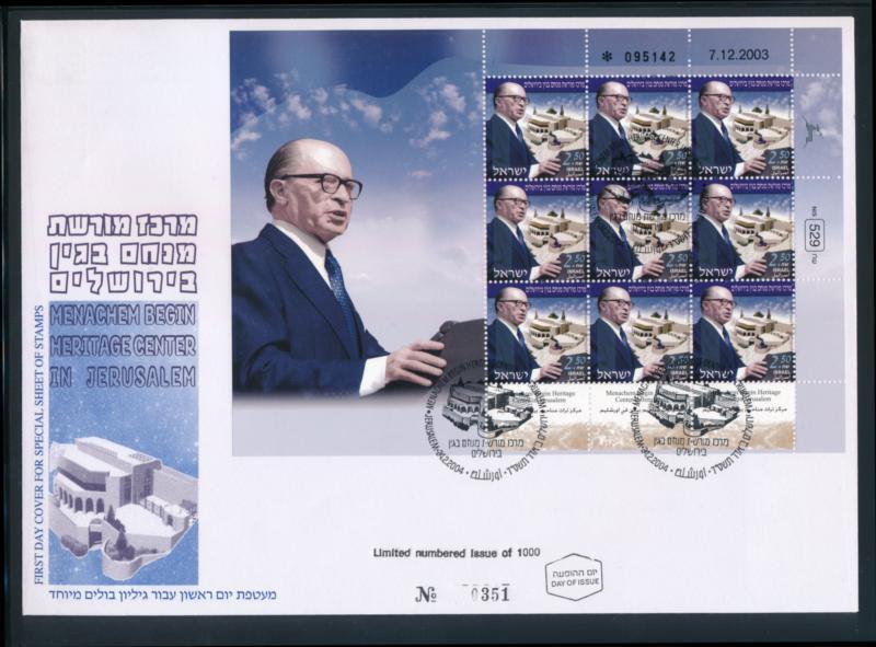 ISRAEL 2003 BEGIN FULL SHEET FDC