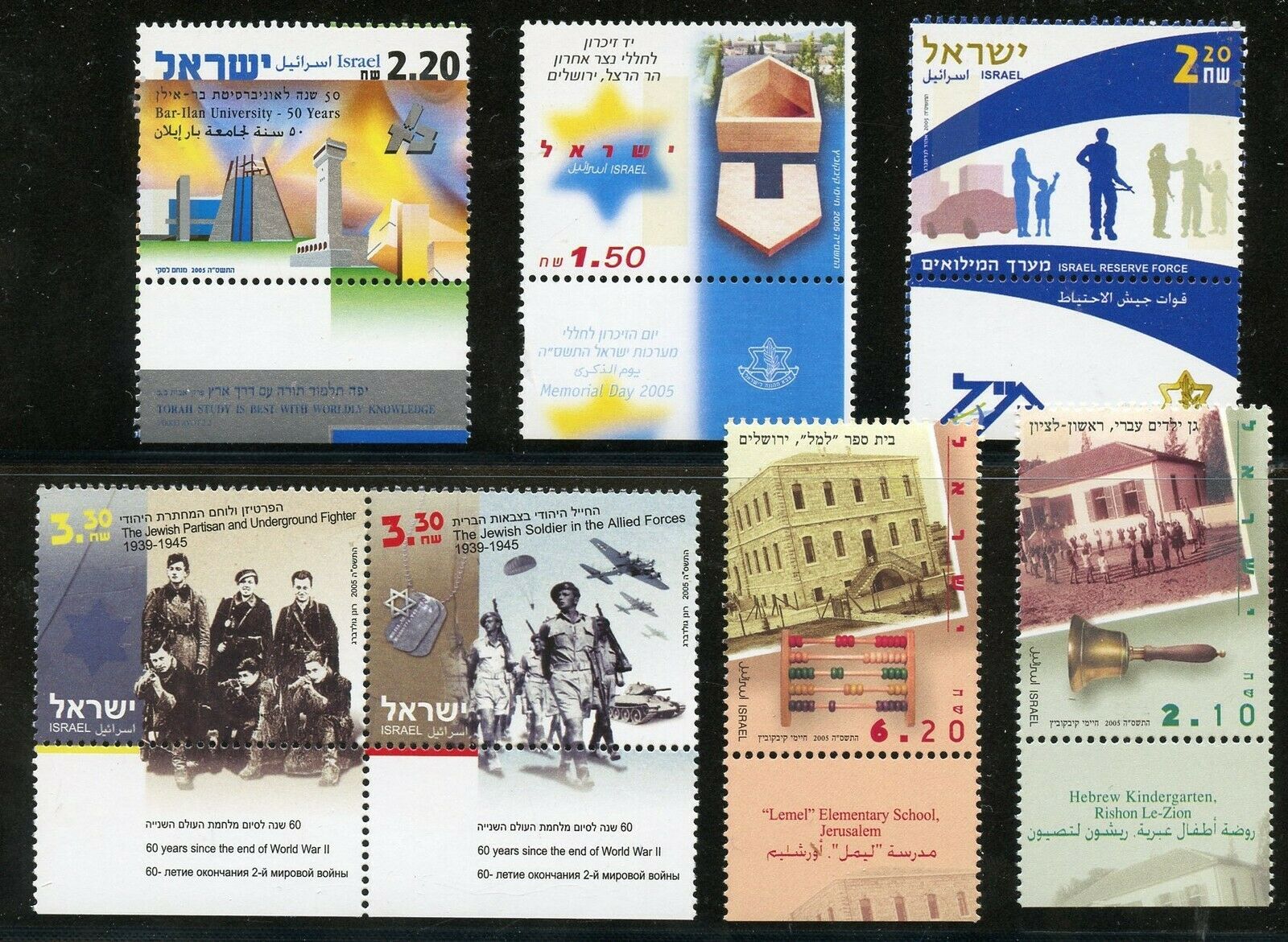 ISRAEL 2005 ISSUES MINT NEVER HINGED TABS AND LEAFLETS AS SHOWN