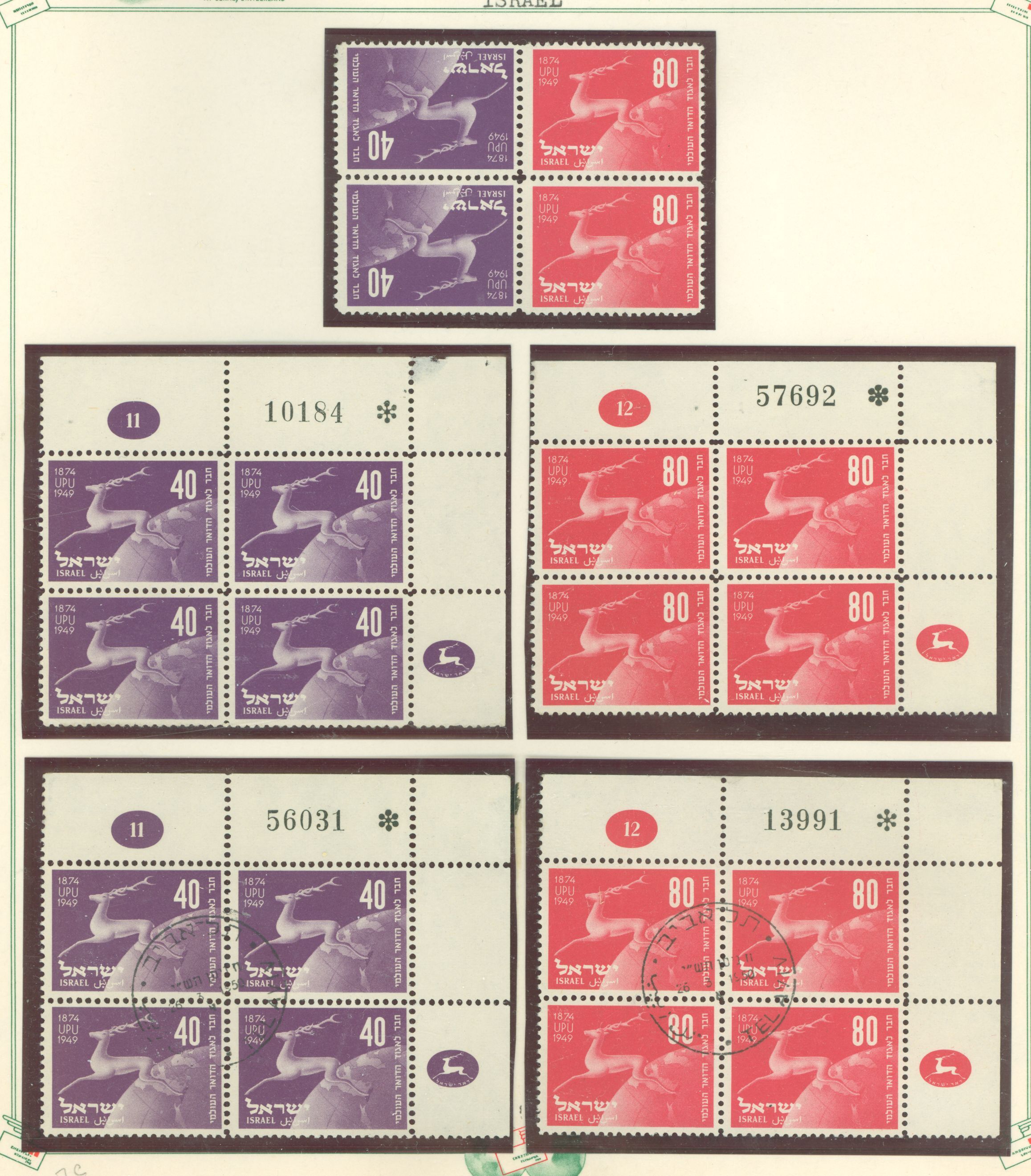 1950 UPU Anniversary number blocks of four mint and usedAPS Stamp Id: 502058374