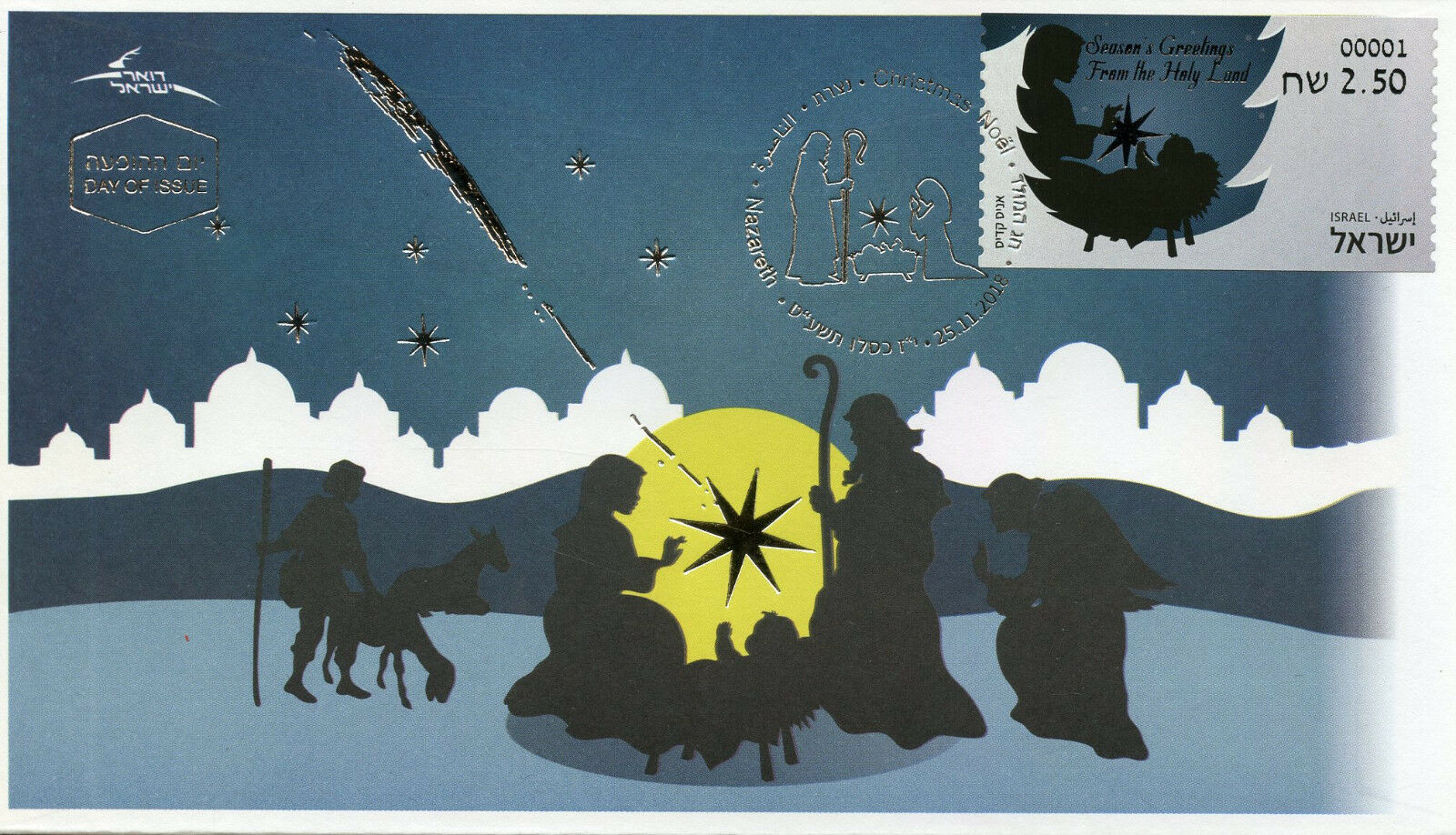 Israel Christmas Stamps 2018 FDC Holy Land Nativity 1v S/A Set ATM Label