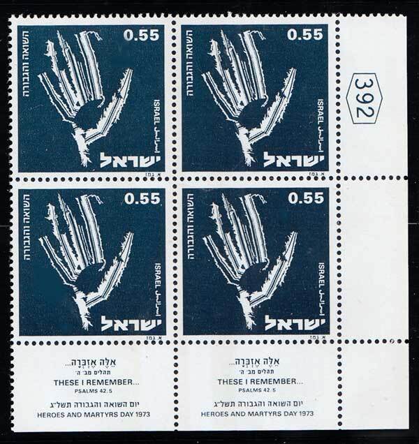 £1 Heroes and Martyrs of the Holocaust Block of four with tabs and control number. Mint never hinged.Seller Information