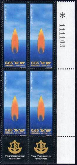 65a 1973 Memorial Day Block of four with tabs and plate number. Mint never hinged.