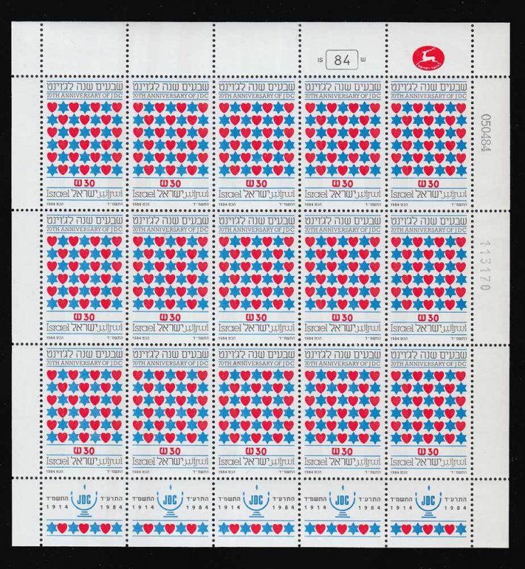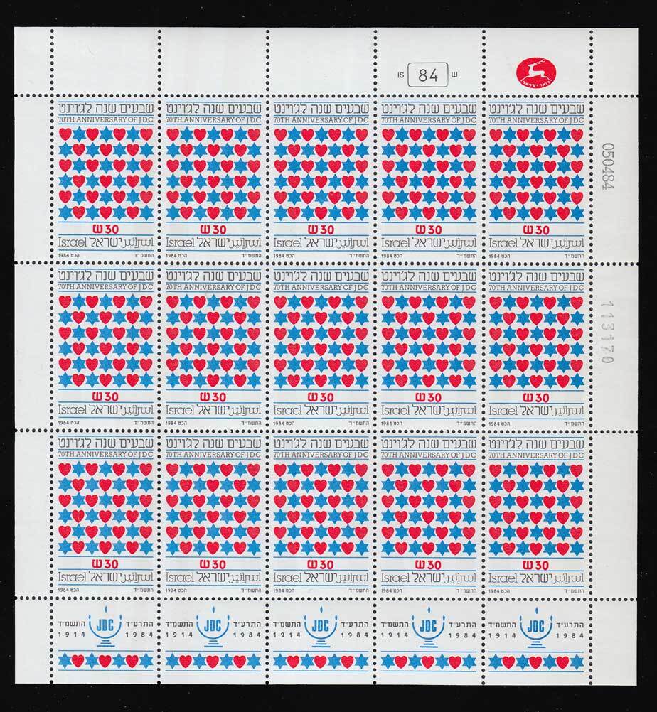 30S American Jewish Joint Distribution Committee Sheet of fifteen with tabs. Mint never hinged.