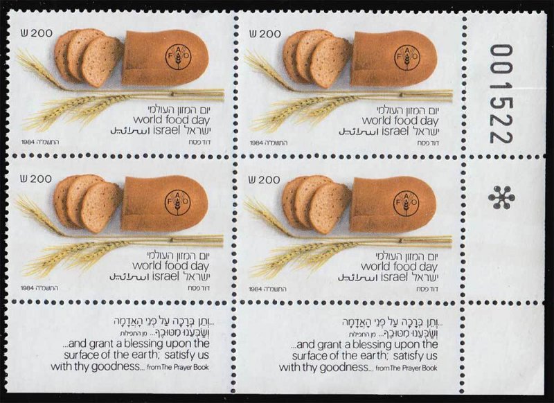 200S Bread and Wheat 1984 World Food Day Block of four with tabs. Mint never hinged.
