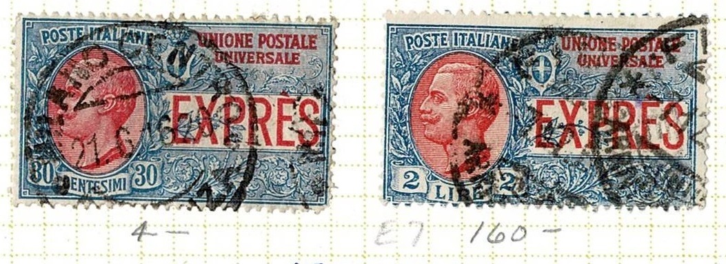 Italy #E6-7 used 30c and 2L special delivery with heavy cancel. 2026 catalog Value $164.00. Page not included.