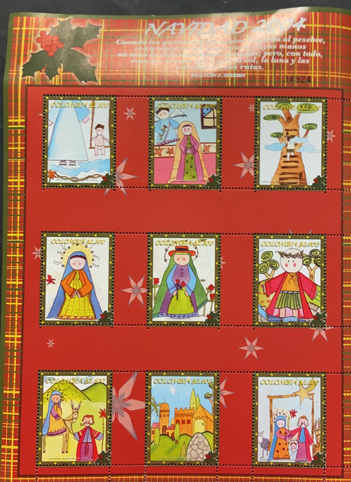 J) 2004 COLOMBIA, CHRISTMAS, FULL SHEET